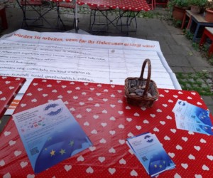 In diesem Jahr haben wir eine besondere Organisationsform gewählt, um die europäische Bürgerinitiative zum Bedingungslosen Grundeinkommen (*EBI) zu unterstützen und mit den Menschen in der Woche des Bedingungslosen Grundeinkommens ins Gespräch zu kommen. Wir hatten in Sachsen-Anhalt 4 Grundeinkommensstammtische in verschiedenen Orten organisiert und boten Hilfestellung bei der Unterschrift, digital oder analog, an.