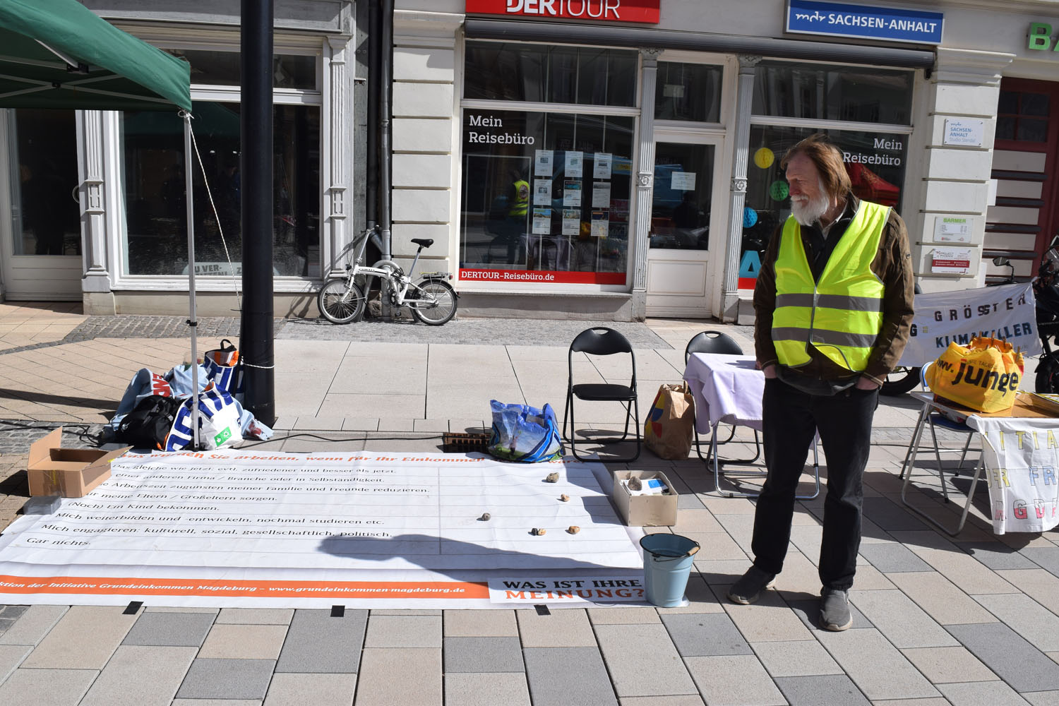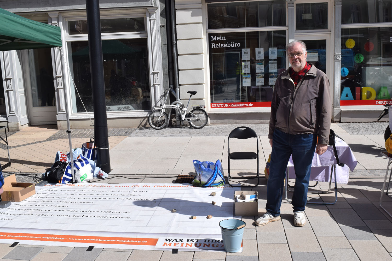 Trotzdem konnten wir, Dietmar Fröhlich und Siegfried Müller, bei einigen Besuchern Interesse für das BGE wecken.