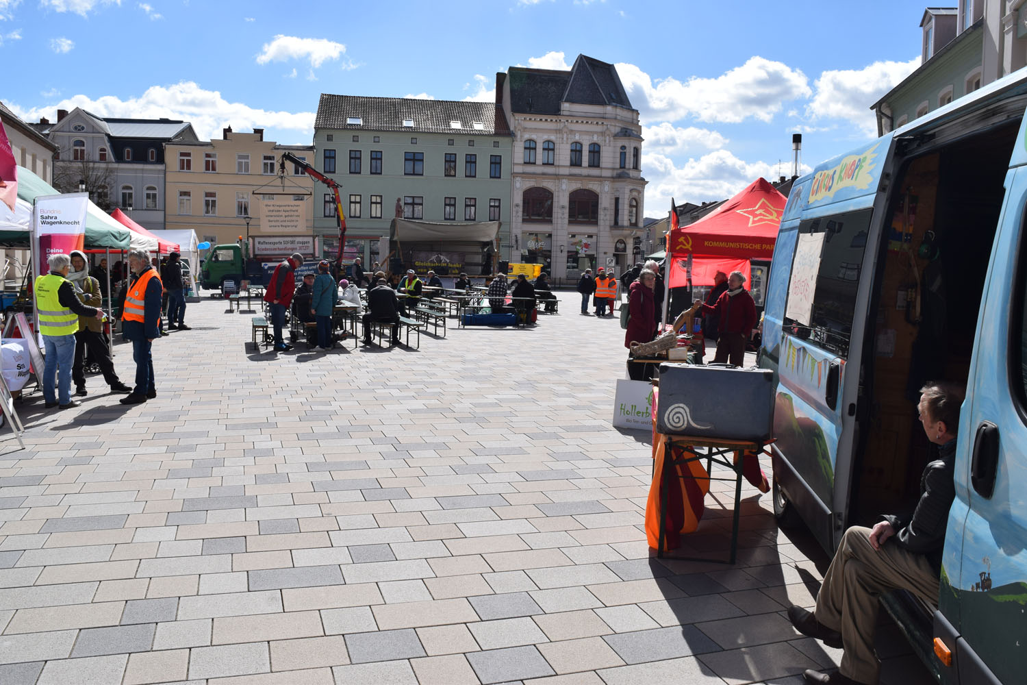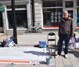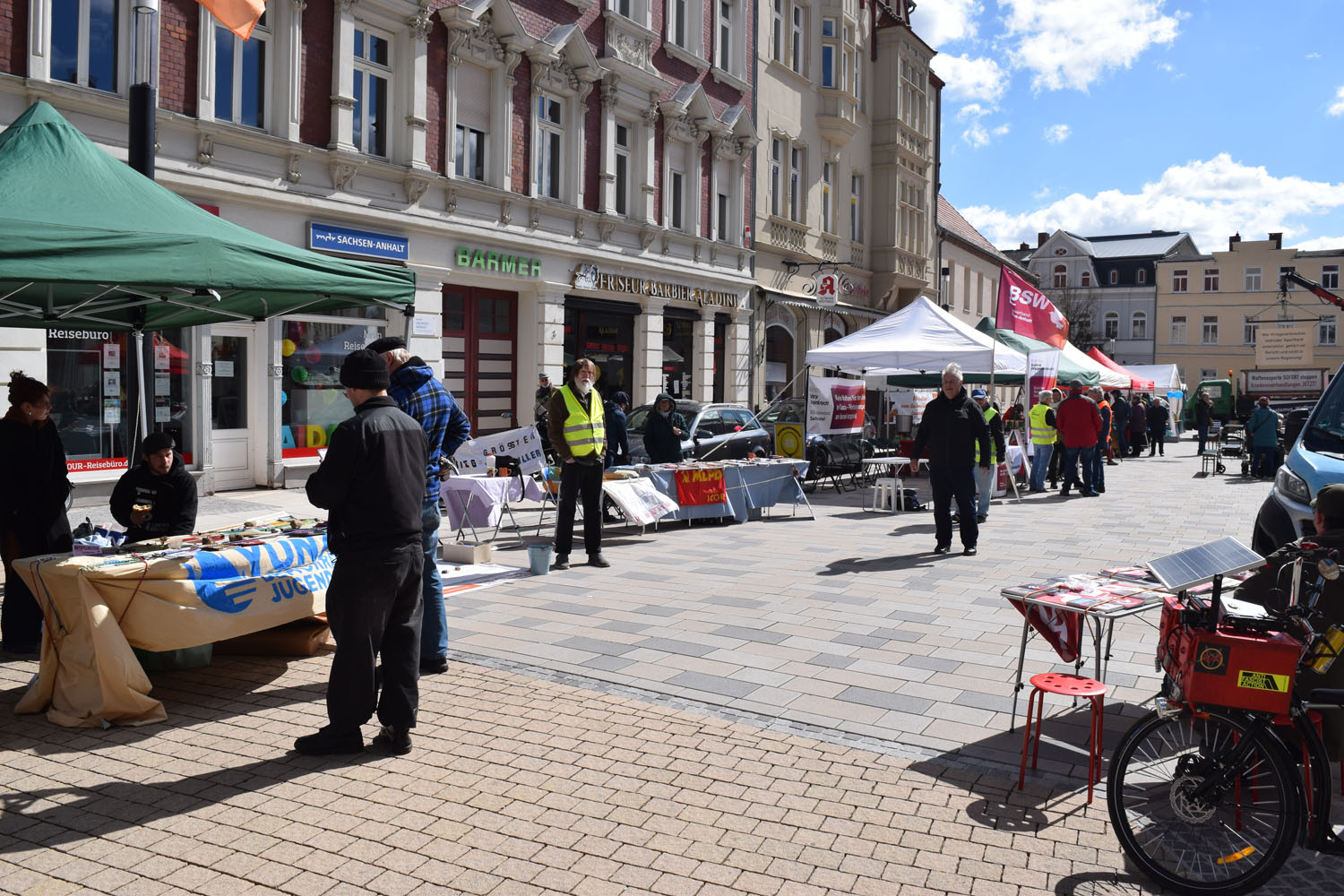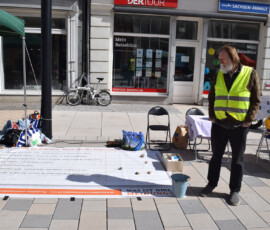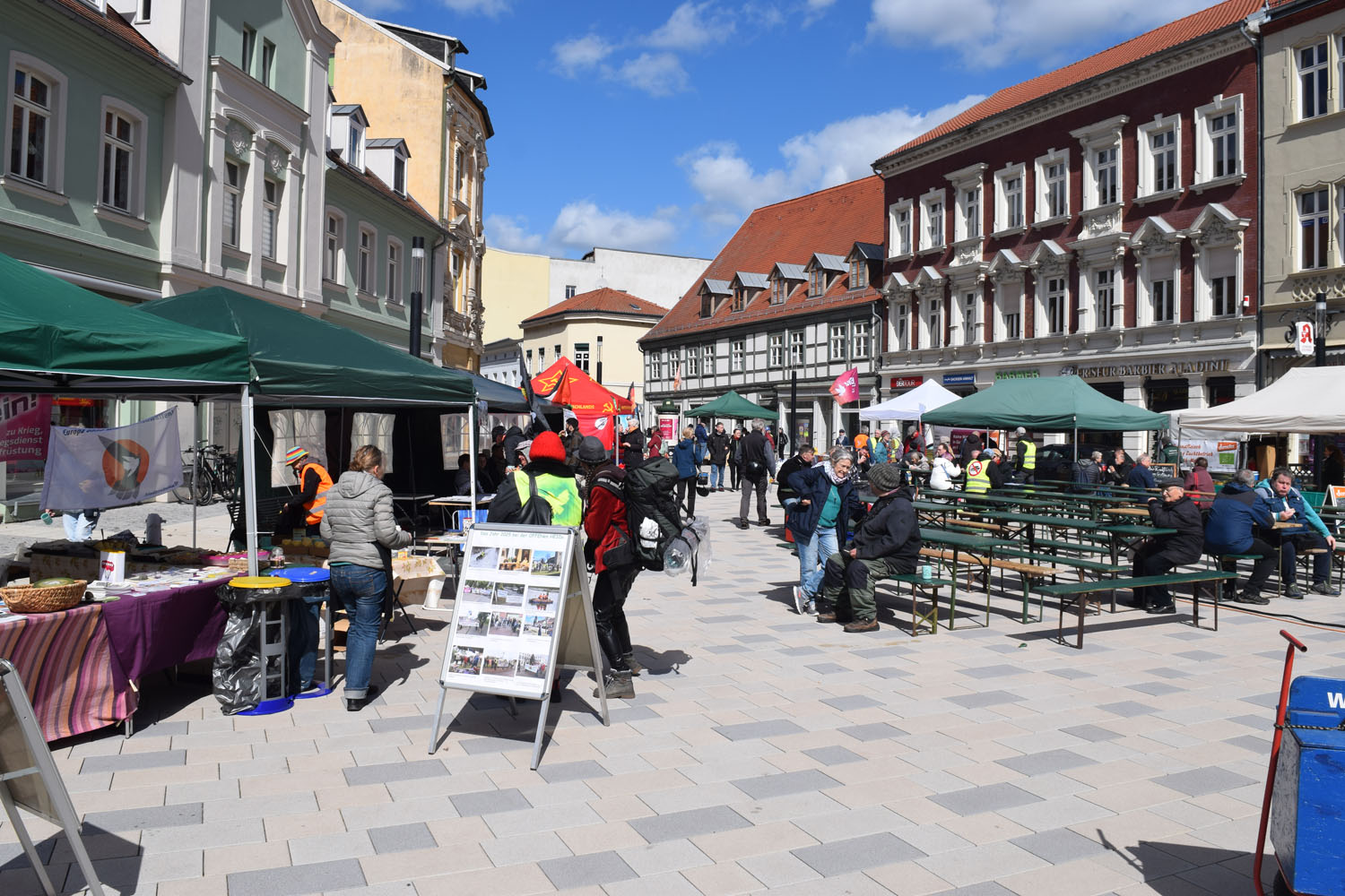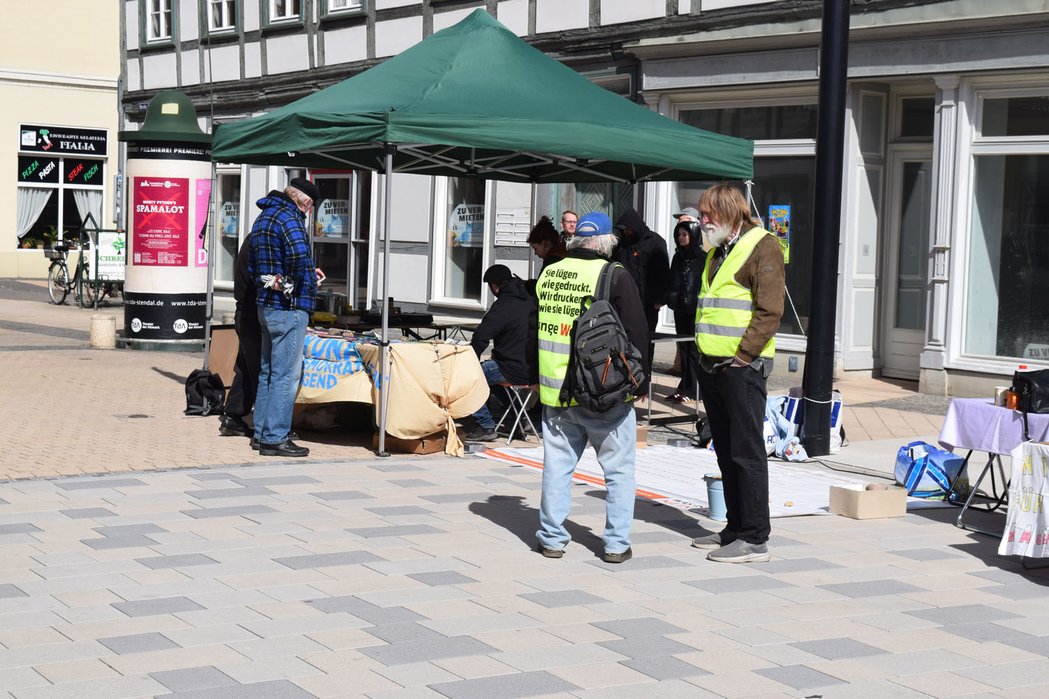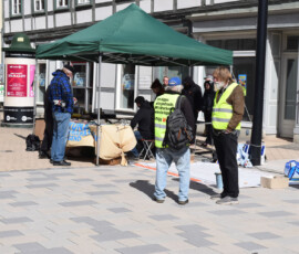 Auf dem Marktplatz in Stendal waren wir in diesem Jahr wieder präsent beim alljährlichen Friedensmarsch am Ostermontag, dem 6. April 2026, organisiert durch den Offene Heide e.V. Es war sehr windig und wir hatten Mühe, unsere Bodenzeitung am Boden zu halten.